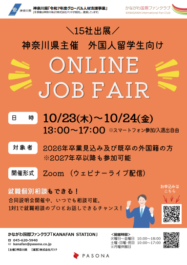神奈川県主催の外国人留学生向け合同会社説明会への参加が決定いたしました!