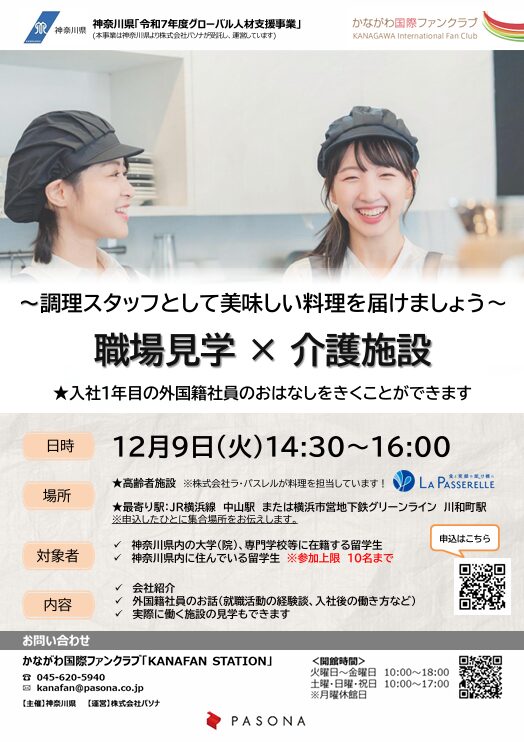 外国人留学生向けオンライン(ZOOM)での合同会社説明会に参加いたします! 神奈川県主催の外国人留学生向け合同会社説明会への参加が決定いたしました!★★株式会社ラ・パスレル 説明日程★★>>>10月23日(木) 16:0 […] -